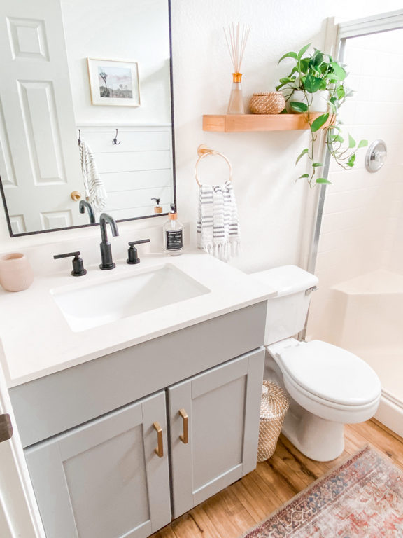 Replacing your old bath or shower will eat up a lot of your budget. However, if you have some unique bathroom fixtures, you can DIY as the cheapest way to remodel bathroom. You can fix it yourself if it’s made of porcelain, cast iron, or fiberglass using a basic DIY polishing kit. Don’t forget to prepare additional equipment such as a sander, spray gun, face mask, paintbrush, etc.