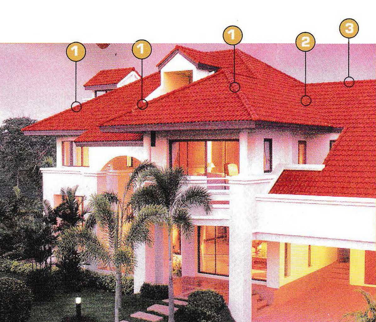 - there are 2 choices of materials, namely clay (roof tile) and substitute materials such as concrete, bitumen, hardwood (shingle), and thin steel sheets formed like roof tiles;